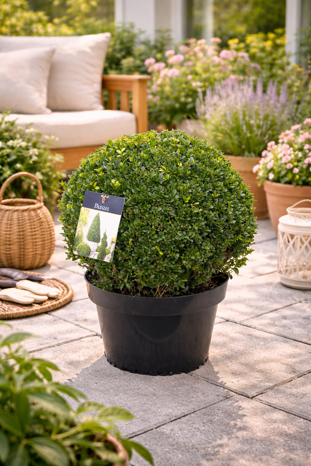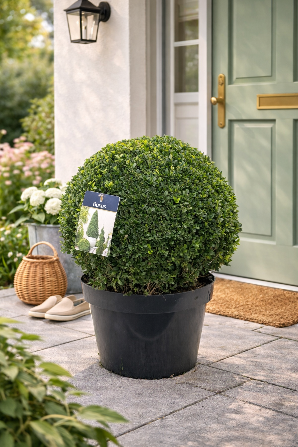 Ať už jako poutač na terase, stylový okraj podél cestiček nebo decentní dekorace do vstupního prostoru – tato buxusová koule dodá každému prostředí zelené akcenty.