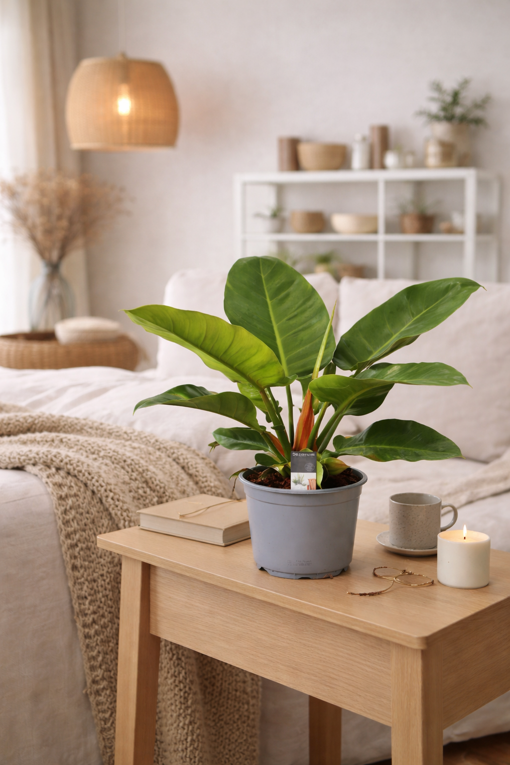 Mit seiner kompakten, aufrechten Wuchsform eignet sich der Philodendron perfekt als moderne Dekopflanze für Regale, Sideboards oder als Blickfang auf dem Boden.